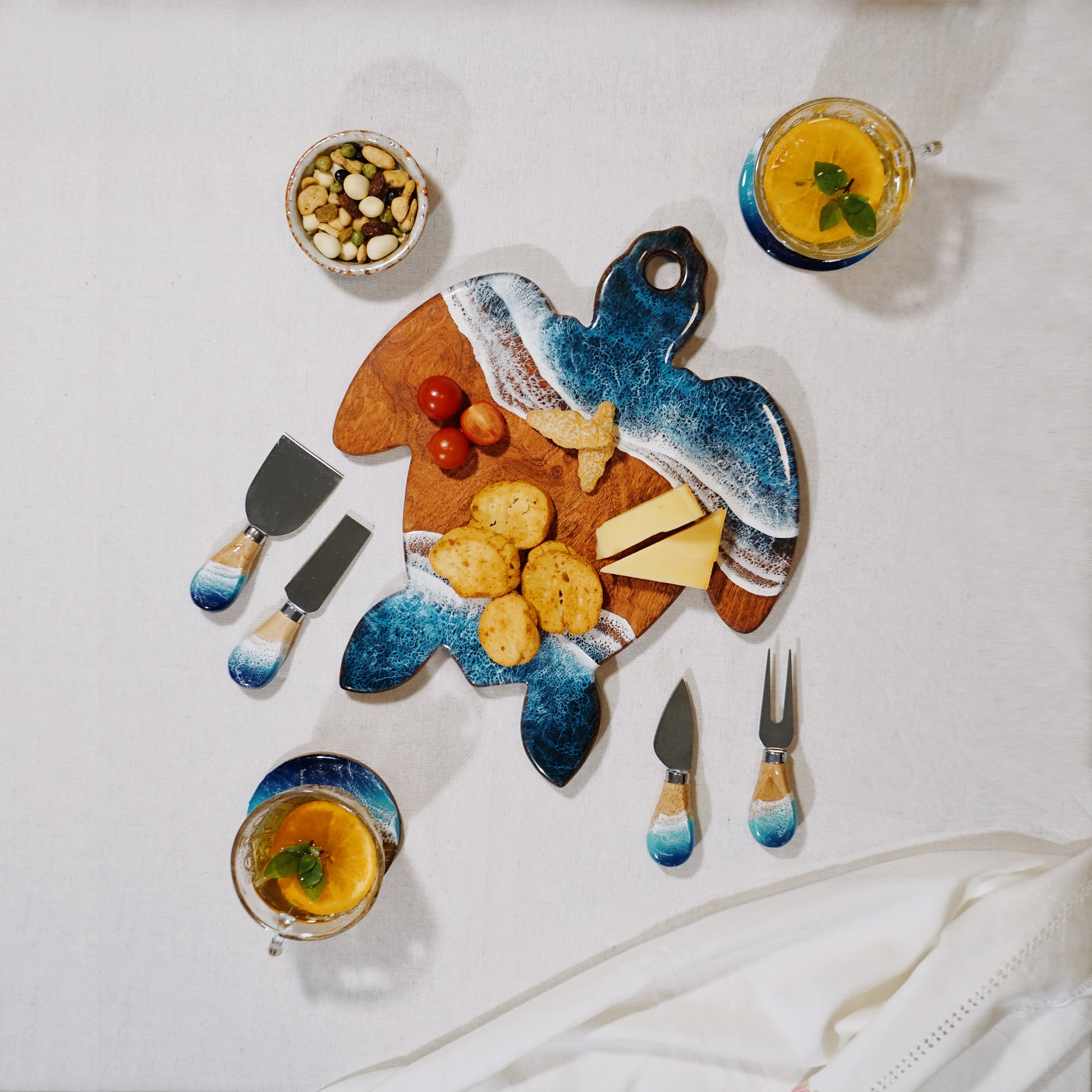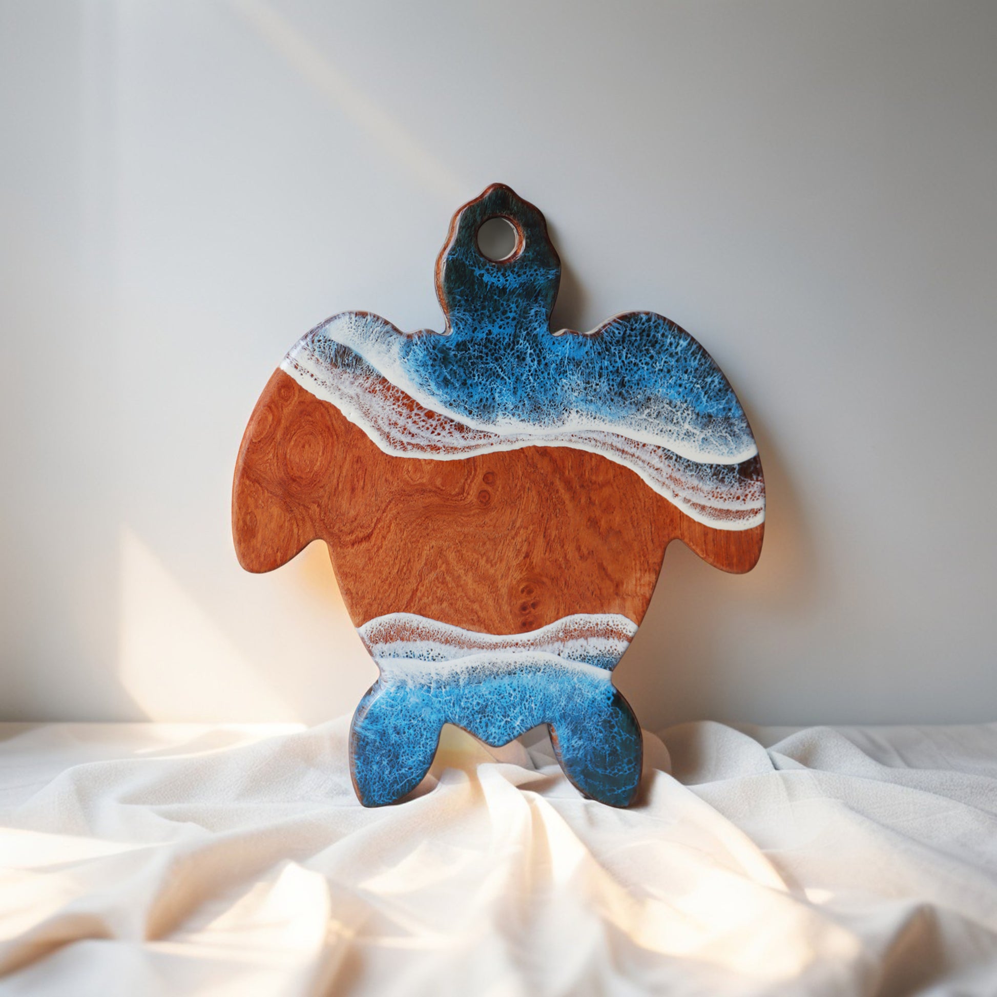 Each piece in this collection is entirely handcrafted โ not mass-produced. As a result, every board will feature unique wood grain patterns and ocean resin waves, making no two pieces exactly alike.